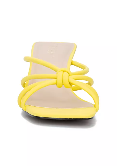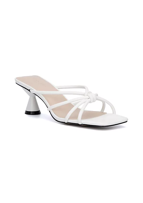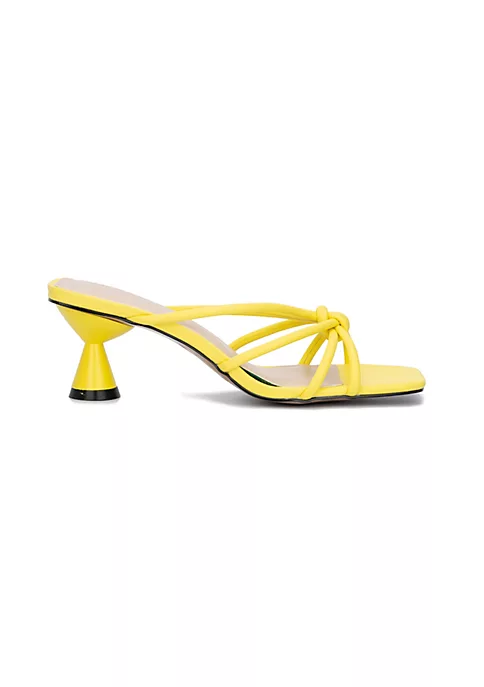This simplistic yet fashionable style can be paired with practically anything; bring out your favorite jeans or that summer dress you love, the Cultivar sandal will make it work!. Strappy heeled sandal featuring a knot front and squared toe. Upper: 100% Faux Leather, Outsole Complete: 100% Rubber, Lining: 100% Faux Leather, Heel Height: 3