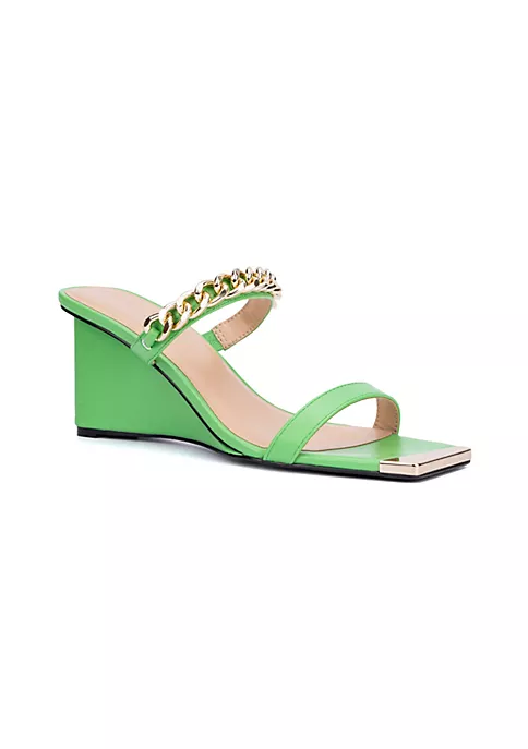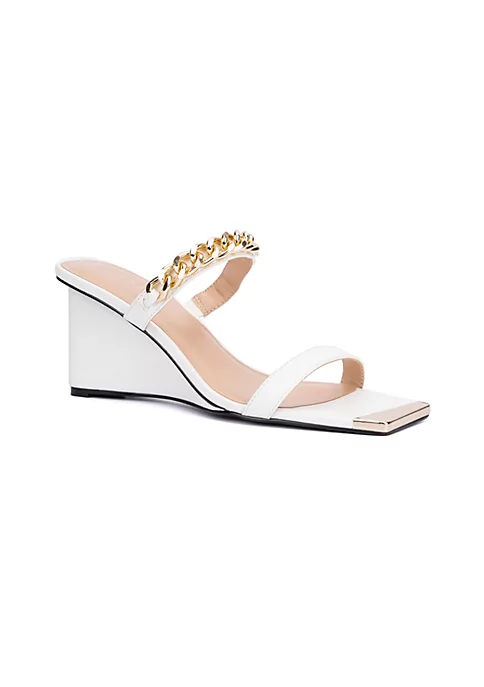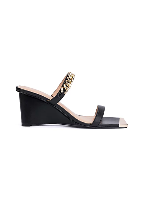 Properly named, this is a magnific style for you girl! The wedge heel on this sandal will keep your feet comfortable while the gold details and squared toe sustain an astounding look. Upper: 100% Faux Leather, Outsole Complete: 100% Rubber, Lining: 100% Faux Leather, Heel Height: 2.75