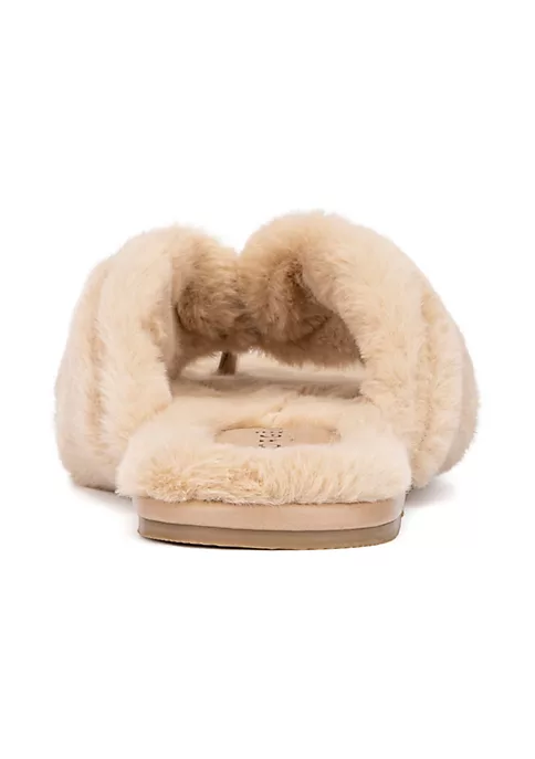 The cute style of these teddy-bear slippers are like having a bunny on your feet! Easy slip-on design and T-strap at toe. Soft, fluffy fabrication with a durable rubber sole and matching soft lining for next-to-skin comfort. Upper: 100% Faux Fur, Outsole Complete: 100% Ethylene Vinyl Acetate (EVA), Lining: 100% Faux Fur, Heel Height: .5″