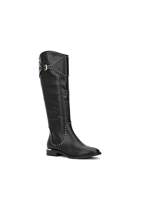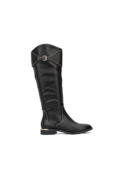 Gold toned studs elevate the Sydney boot to an iconic status. Side zip closure, buckle décor and metallic accent give this style the perfect touch.