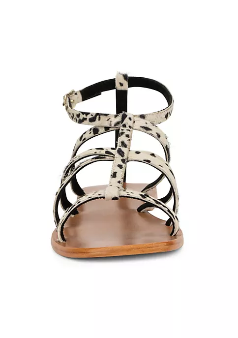 This charming strappy animal print sandal is just the thing you need to liven up your daily wardrobe. With this Leopard print design buckled to perfection, your feet will have a light and fashionable entrance. Upper: 100% Leather, Outsole Complete: 100% Leather, Lining: 100% Leather, Heel Height: .20″