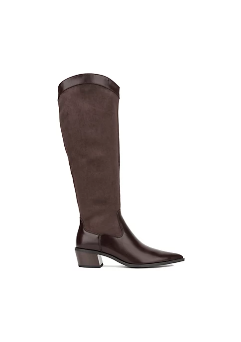 Elegance and comfort meet with the two-toned Venezia boot. Sitting on a short block heel and with a side zipper closure, this pointy toe boot is IT.